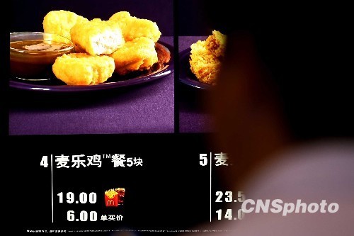7月7日,一名顾客在麦当劳北京一门店选购麦乐鸡。近日,世界知名快餐品牌麦当劳再次遭遇食品安全质疑。有外国媒体报道,在美国麦当劳出售的麦乐鸡,含有泥胶和石油成分的化学物质。对此,麦当劳中国有限公司发出声明称,在中国麦当劳售卖的麦乐鸡中聚二甲基硅氧烷、特丁基对苯二酚两种物质的含量完全符合现行国家食品添加剂使用卫生标准,对消费者的健康无害。 中新社发 富田 摄