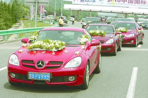 “一共是40多辆迎亲车,有保时捷911、奔驰SLK350、宝马Z4等等,这些都是敞篷的,还有奥迪Q7、保时捷卡宴等,每辆车价值都在百万左右。”据知情者称,婚车联盟提供了此次婚车的租赁,一天的租金在8万到10万元之间,而所有婚车总价值加起来,怎么也超过3000万元了。