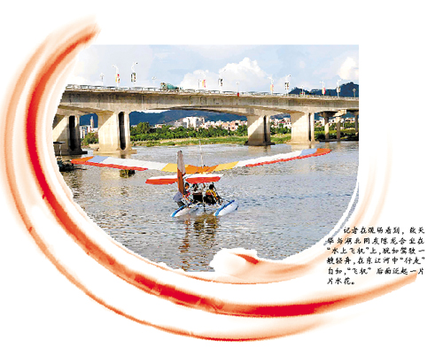 被当地群众称为“河源怪人”,一生钟情自造“飞机”、现年35岁的河源市连平县田源镇金树村农民熊天华,为渴望拥有自己亲手制造出来的飞机和实现自己的飞天梦,16年来一直沉迷闭门自造飞机和进行冒险试飞活动。昨日,他造出第六架不同于以往的陆上“飞机”——水上“飞机”,这也是他人生首次自造的“水上飞机”。