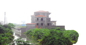 只见一排水泥建筑沿河而立,尽管只有三层楼,但层高明显高于普通的住宅,毫不亚于民房的四层楼。在周围绿化的掩映之下,这些别墅显得颇为幽静。尽管尚未进行装修,但已经成形的水泥框架和墙体,已经能看出这些楼宇的不凡气度,宽阔的楼梯不是一般的别墅所具备的。