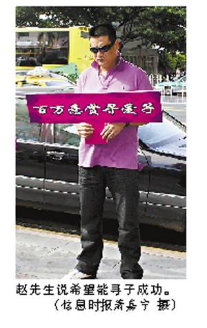 昨天上午,记者在广州大道中旁边的人行道上见到赵先生。只见他近一米八的个子,眼戴墨镜,在赵先生的旁边停着一辆高档奔驰车,一起来的还有赵先生的司机。赵先生告诉记者,自己已经在此地站了半个钟头,下午还会去岗顶举牌寻人。