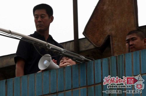 突然,楼顶一年轻女子蜷坐在楼檐边,拿着扩音器冲着楼下哭诉的女子大喊,“你快回家照顾孩子,有我这一条命就够了。”见楼下女子仍然哭诉不止,楼上者又大喊道,“你快回去,非让我临死也不得安生吗?”