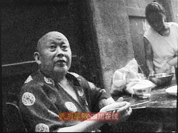 袁大爷身穿唐装,正在享用三菜一汤的晚餐。