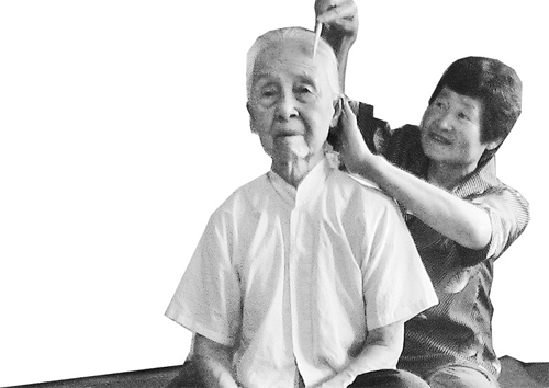 王振燕为孔祥琴老人梳头。 周万良 岳培新摄