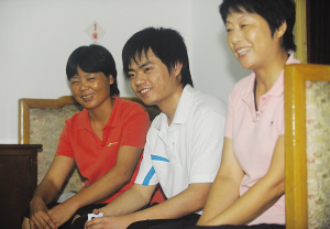 得知自己被录取后,李斌和妈妈(左)还有邻居(右)终于舒心得笑了。吴俊 摄
