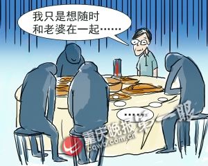 三个月前,家住重庆江北区盘溪路256—7赵伟波的妻子梁茜去世,三个月来,赵伟波一直沉浸在对妻子的哀思中。几个兄弟伙常约他出去散心,但他的举动让大家觉得太雷人:每次参加饭局他都要占两个座位、摆两套餐具,有时还将妻子的灵牌摆在自己旁边的座位上。