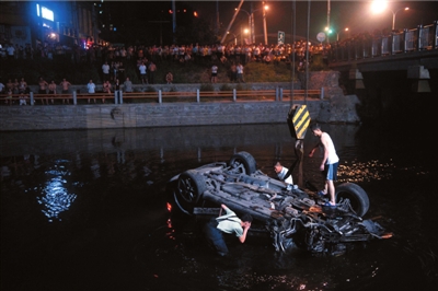 前晚11点,朝阳区酒仙桥路坝河桥梁处,一辆高速行驶的保时捷凯宴轿车先后与迎面而来的两车相撞后,冲破河边护栏,倒栽入水深半米的河中。车内一男子被路人救出后,声称尚有3人被困。消防员随后“地毯式”排查两小时,但并未发现车内及水中有人。该男子与被撞两车的司机不同程度受伤,其所述被疑不实。