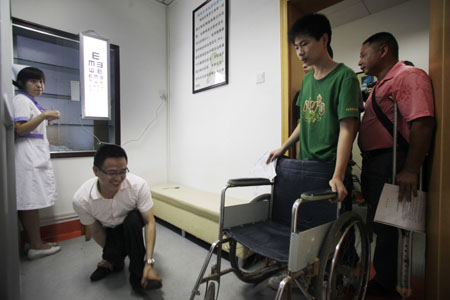 昨日下午,在福建医科大学附属第一医院,18位腿脚不便的残疾人通过了驾校体检。在这18人中,将诞生我省第一位双下肢残疾的司机。