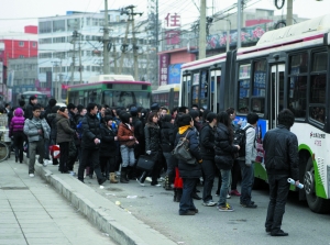 早起赶车的唐家岭上班族。