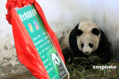 2007年12月30日,济南动物园,公园管理部门和社会爱心捐助大熊猫的单位等一起为“美女大熊猫”20号举行隆重的征名揭牌仪式。这只于当年9月28日落户济南、谱系号为20号的卧龙大熊猫获得昵称“泉泉”,富有济南特色,象征着她在泉城的美好生活。 被誉为四川卧龙一号美女大熊猫的20号目前在济南生活良好,社会各界先后为她起了数千个昵称,经过选拔,最终“泉泉”获得一致通过。 中新社发 周青先 摄