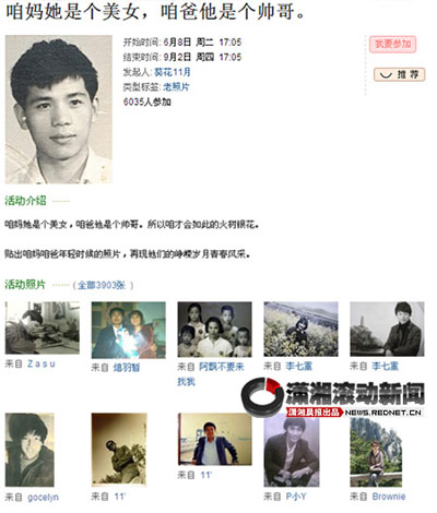 网页截图:网友号召晒年轻父母照 6千人参与比拼靓妈帅爸。