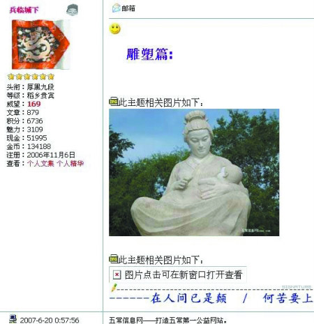 五常论坛中的“黄河母亲哺育像”。该雕塑已成当地景区一景。