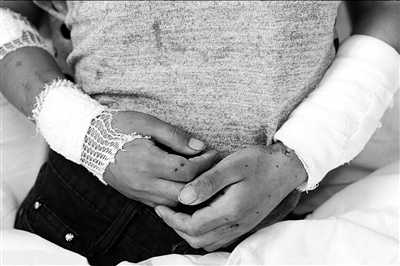 小茹的手臂被纱布包裹着。记者潘之望摄