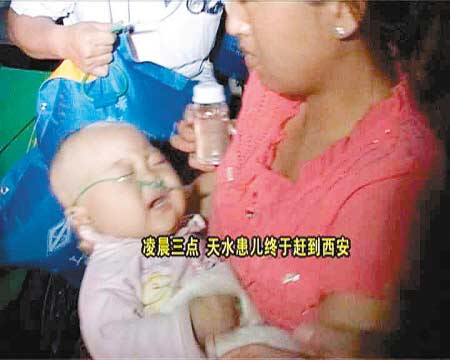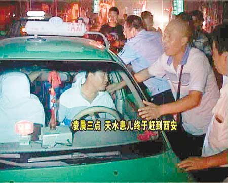 陕西电视台FM99.9调频广播热线接到一名来自甘肃天水的出租车司机郑师傅的求助电话,他说自己车上拉了一名八九个月大的重症婴儿晶晶,由天水转往西安西京医院急救,因为途经西宝高速路蔡家坡段发生车祸严重堵车,晶晶氧气眼看就要用完,而且孩子出现高烧、抽搐等症状,情况比较紧急。