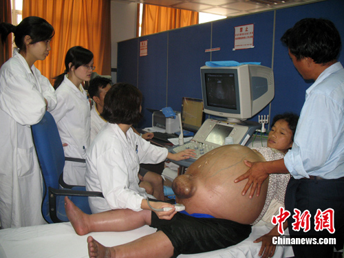考虑到彭某家境十分贫寒,医院决定为彭某确定一系列免费检查方案:肝胆彩超,盆腔彩超,CT扫描,化验……以解大肚之谜。