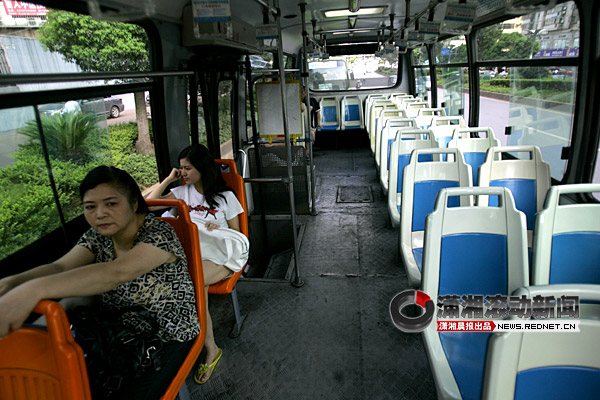 29日,长沙市最高温达到36℃。各路公交车在日头下跑,车上乘客也不见少。