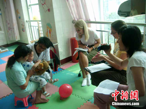 日前,两名美国慈善组织工作人员来到河南汝州市金庚医院,看望了脑瘫康复儿童,并为39名脑瘫康复孤儿办理了出国收养手续。 (记者 李金辉 通讯员 桂焱炜 李伟恒)