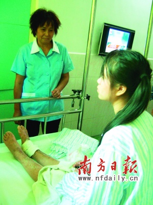 她被工友送到东莞市人民医院抢救,因伤势太重,又转到广州军区广州总医院。经诊断,她的两节腰椎爆裂性骨折并不完全性截瘫,一节胸椎压缩性骨折,双脚踝粉碎性骨折,必须尽快接受手术。