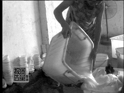 资料图:央视曝光部分餐具消毒厂卫生极差,洗碗水循环使用。