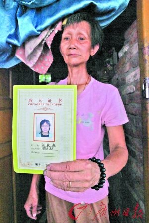 女儿成人证书上面的小一寸彩色照片,是黄群枝唯一能看见女儿样貌的方式。