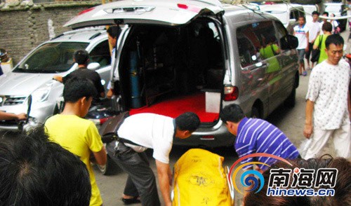 下午15点20分,死者被一辆车牌为琼AOCP2x的面包车拉走,一名围观市民气愤地说:“120怎能与拉尸者勾结在一起骗人,真是丧尽天良。”