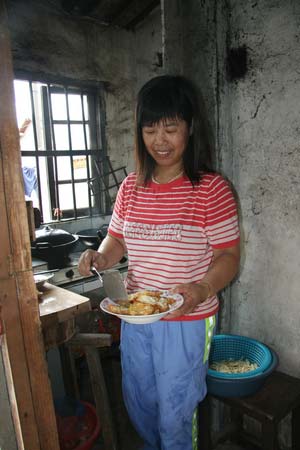 凌金弟在简陋的房子里,局促的厨房只放得下一个煤气灶。