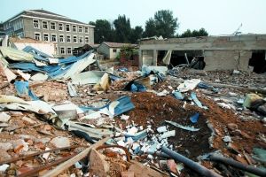 冯先生因房门被震得变形,无法打开,从暴露的房顶爬出。一位从家里匆忙跑出的男子,光着膀子,锁骨处已扎入一块碎玻璃,浑身淌着血,只穿一条内裤,向其他村民求助:“帮我去屋里拿条裤子”。
