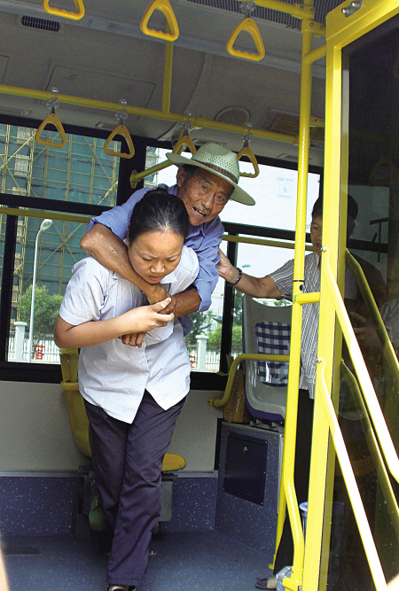 陈叶常常背行动不便的乘客上下车(图片来源:宁波日报)