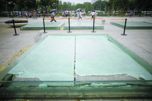 昨日,奥林匹克公园,一块玻璃制的景观已经破裂 记者 浦峰 摄