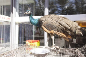 长春市林业局野生动物和森林资源保护处侯科长告诉记者:“我们也接到过举报,到这家饭店看过,店主向我出示过证件,证明孔雀来源合法。(记者 朱巾国)