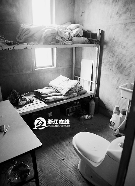 卫生间里也挤下一张高低铺