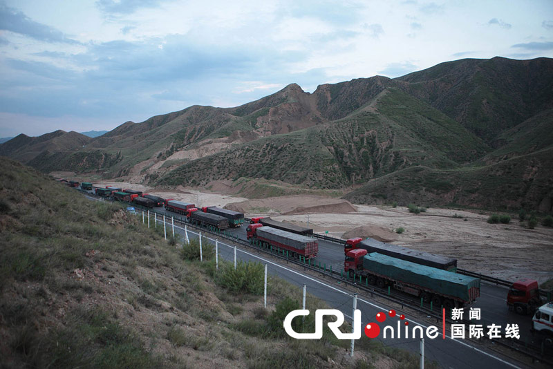 2010年8月16日,京藏高速内蒙古兴和到河北段进京方向,被堵在高速上的大货车排成长队,等待路通畅。当天,该处堵车进入第三天。