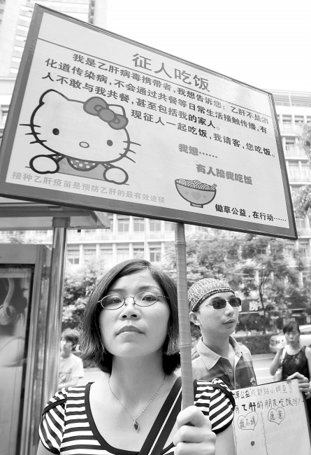 昨日,乙肝病毒携带者的网友“锄草”在成都街头征人吃饭。