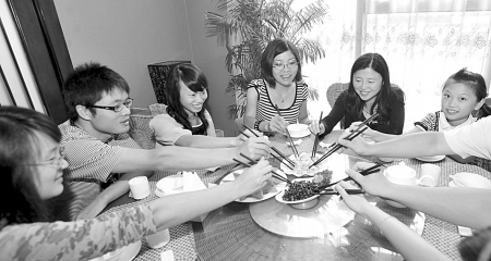 “锄草”与征集的“饭友”在餐馆吃饭。