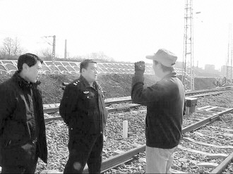 陶国华(中)在国家重点工程工地巡查、调研治安情况。