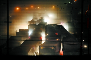 晚上8点左右,记者又回到207国道时,发现万全收费站附近大货车拥堵的情况比上午更加严重,上午车辆从南往北还能慢慢挪动,到晚上整条道路已经纹丝不动了。一辆警车开着警灯不断喊话想通过可无济于事。