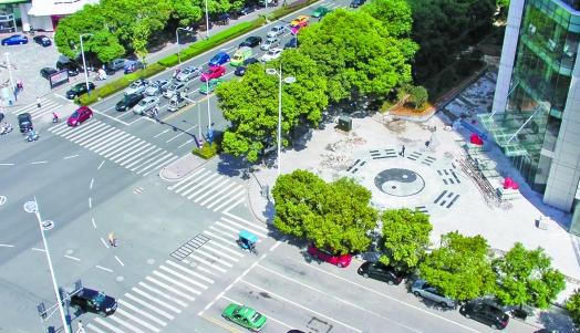 在温州车站大道和温迪路交叉口,记者找到了这个被网友热议的超大八卦图。八卦图位于一幢在建的商务大厦的门前广场上,记者目测,约有近百平方米。