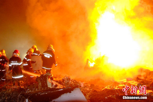 24日21时36分许,河南航空有限公司(原鲲鹏航空公司)一架由哈尔滨飞往伊春的E190型飞机在抵达伊春机场降落时失事,机上包括5名机组人员在内共96人。失事现场发现42具遇难者遗体,其余54人获救送医,目前无生命危险。图为飞机失事现场 张恩普 王志富 摄