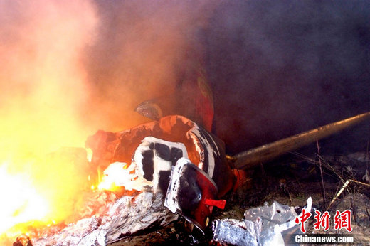 24日21时36分许,河南航空有限公司(原鲲鹏航空公司)一架由哈尔滨飞往伊春的E190型飞机在抵达伊春机场降落时失事,机上包括5名机组人员在内共96人。失事现场发现42具遇难者遗体,其余54人获救送医,目前无生命危险。图为飞机失事现场 。陈刚 摄