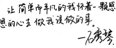 “我简单而平凡,只是怀着一颗感恩的心去做我该做的事。”这是石秀琴的座右铭,也是她一直乐观面对生活的精神支柱。