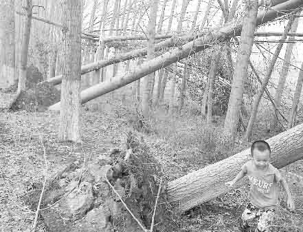 据了解,当日凌晨6时30分至上午8时,短短90分钟时间,暴风雨席卷了孟津多个乡镇。在多数受灾乡镇,先是冰雹将农民的塑料大棚砸破,之后暴雨灌入其中,将大棚冲坏;即将收获的玉米,被大风成片刮断后,倒伏在地上,几乎绝收;县乡道路上,水桶粗细的行道树也被拦腰刮断。粗大的树干倒在道路上,只有动用大型机械才能疏通。在村民家里,部分猪圈和院墙被倾倒的大树砸坏。