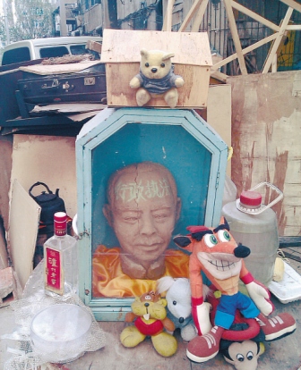 “这个是你捏的啊?”记者问道,在电话亭内,一面点钞一面看了记者一眼的头像主人老李反问道,“供别的有啥意思?”“行政执法保佑你吗?”“那可不保佑咋的,这家伙免检了。”“这个泥人是谁啊?”“我掏炉子剩的泥摔的。”虽然老李没有直接回答提问,但他承认头像“身世”。