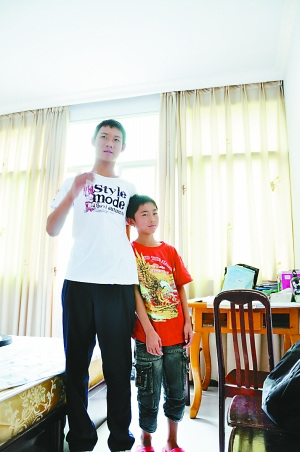 刘乾长得这么高,是不是遗传?记者了解到,刘乾的父亲刘国平身高1.70米,母亲张凤1.60米。同是一个父母生的哥哥、上大四的刘川身高只有1.72米,同岁的表弟王森林,比他矮40厘米。