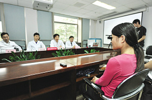 吴倩作为一名医科大学生,选择卖肾整容,引起了很多人对其心理状况的担忧。前天,南医大友谊医院曾为吴倩做了一次简单的心理问卷。出乎很多人的意料,她的问卷成绩竟然是“正常”。为了进一步确定吴倩的心理状况,昨天上午,医院的院长、专家出动,设置了与整容手术、审美观、价值观有关的问题,对吴倩进行一次“心理围观”。本报也邀请了晓然心理咨询中心的副主任孙平和其助手到场,帮助医院进行专业的心理诊断。