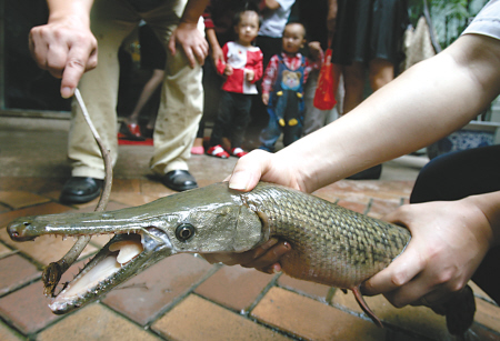雀鳝来自北美或中美,目前生活于美国南部湖泊、中美等热带河流地区,据报道,它最长可达6米,能吃下人类。由于雀鳝是一种食肉鱼,食量大很凶猛,因此被列入世界十大凶猛淡水鱼类之一,与食人鱼齐名。不过雀鳝肉可以食用,但其卵有剧毒,一旦人误食可能致命。(记者 王珏)