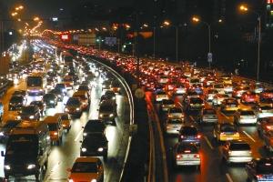 昨晚九点多,四惠桥,交通拥堵有所缓解。本报记者 薛珺 摄