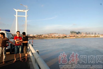 犯罪嫌疑人在晋江大桥抛尸地点指认现场。(图片来源:东南网)