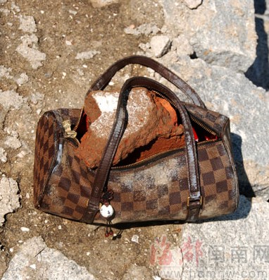 嫌犯还将砖块装入死者的包中,扔进水沟。(图片来源:东南网)
