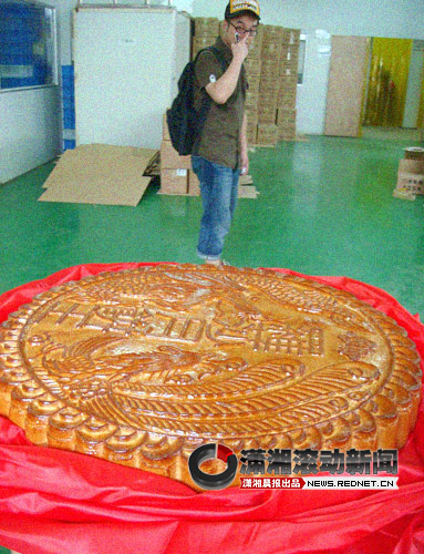 号称长沙今年最大的月饼,重达100公斤。陈斌摄(图片来源:红网)