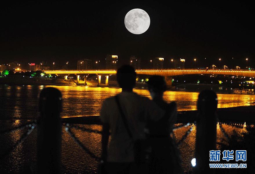 9月22日傍晚,福州一对情侣在欣赏圆月美景。今夜是团圆夜,不论你身在何方,身边是否有家人陪伴,抬头仰望明月之时,都能感受到月光传递的那份相思之情。 新华社记者李健摄